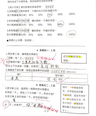這一課重點放在文言文自學方法引導與學習後檢核,沒有讓學生針對狐假虎威文本畫心智圖,